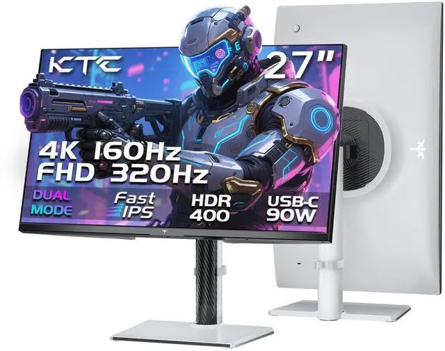 KTC Dual-Mode Monitor4K 160Hz or 1080P 320Hz. This advanced 27-inch gaming monitor supports dual-mode switching. Enjoy the ultra-crisp 160Hz UHD resolution for exceptional visual quality, or switch to 320Hz FHD for ultra-fast competitive gaming.