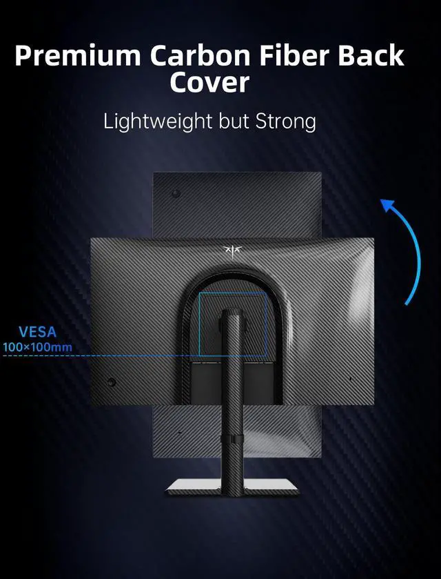 ^^ Carbon Fiber Backcover: This ktc 27 inch monitor 4k features a carbon fiber back cover, which is lightweight but strong. Its premium design, strength, and cutting-edge material innovation make it strike a balance between performance, aesthetics and practicality.