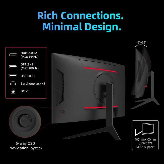 [Curve & High Resolution] With the 1500R Curved monitor 27 inch HVA panel and High Definition 2560x1440 monitor, this 1440p gaming monitor immerses you in the game world, giving you an edge to detect threats and seize opportunities faster than your rivals. ^^ [180Hz & 1ms for Gamers]Elevate your gaming experience with a blazing 180 Hz gaming monitor refresh rate. The ultra-fast 1ms response time reduces motion blur, delivering a smooth and responsive gaming experience. This 2K monitor 144Hz supports Adaptive Sync, compatible with both FreeSync Premium and G-SYNC. ^^ [132% sRGB & 5000:1 Contrast Ratio ] In contrast to ordinary 27-inch 1440p monitors, this display stands out with its exceptional combination of vibrant colors and an astonishing contrast ratio of 5000:1.