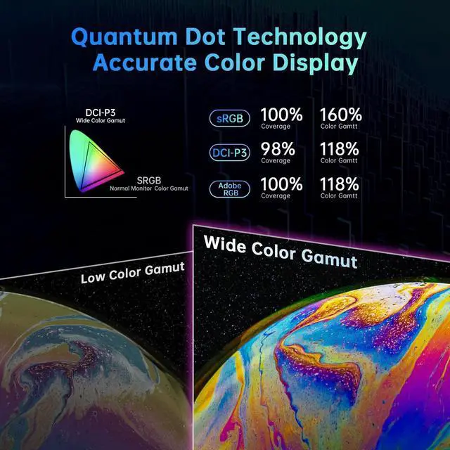 From deep shadows to vivid scenes, enjoy HDR1000 brightness, 100% sRGB, and 98% DCI-P3 for breathtaking colors and a 1M: 1 HDR contrast ratio. ^^ [Seamless Connectivity and KVM Magic for Gaming Enthusiasts] Connect effortlessly with USB Type C 90W reverse charging, displayPort 1.4, 2x HDMI 2.0 ports, and 3 x USB 3.0 interfaces. Plus, KTC 4k gaming monitor 's KVM switch simplifies switching between devices. ^^ [Designed for Your Comfort and Convenience] This vertical monitor is built for your comfort, with adjustable height, tilt, swivel, and pivot options. The quick-release stand supports easy desk and wall mounting (VESA 100x100mm compatible). Dominate your games in style!