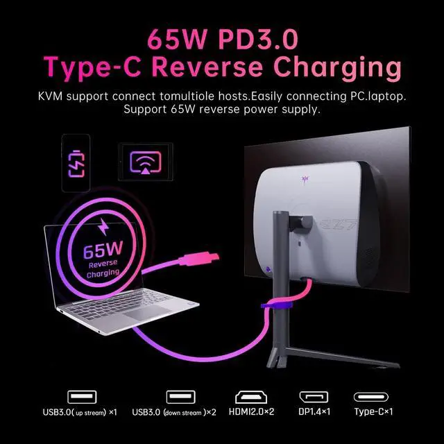[NEW LG OLED GAMING PANEL] 27 inch QHD 2560 x 1440 Gaming Monitor OLED Display, four-sides bezel-less and nano-texture glass screen, adopt anti-burn-in technology protect screen, create endless immersive experience. ^^ [BOOST YOUR GAMPALY] Ultra-fast 240Hz Refresh Rate, 0.03 ms (GTG) Response Time, Supports FreeSync Premium & G-Sync Compatible, Blue Light Shift save your eyes, and metal stand with RGB light matches the white monitor, fuel your gaming. ^^ [TYPE-C PD 65W REVERSE CHARGING] Not only HDMI 2.02, DP 1.41, USB 3.03, G27P6 also has a type-C hub for advancing your gaming, design, working and entertainment experience.
