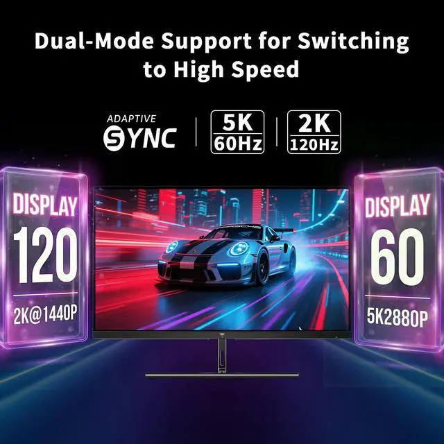 [Dual Mode 5K@60Hz and 2K@160Hz] This dual-mode 5K2K monitor is perfect for creative professionals. It offers 5K@60Hz (5120x2880p) for vibrant, precise colours and stunning detail. Switch to 2K@120Hz (2560x1440p) for smooth gaming and multitasking performance. Compatible with Mac Mini for seamless integration. ^^ [Professional Colour Performance] With 99% DCI-P3 and 100% sRGB coverage, this 27-inch monitor delivers vivid, accurate colours, with E<2 for precise colour accuracy, ideal for design and video editing. ^^ [HDR400 / 500 cd/m Brightness] HDR400 and 500 cd/m brightness ensure clear, vibrant images in all lighting conditions.