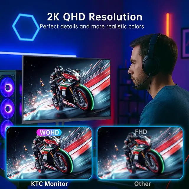 Up to 210Hz Gaming Monitor210 frames per second update, 3.5 times faster than 60Hz, making dynamic images more coherent and avoiding blurring and trailing during rapid movement. Enjoy ultimate smoothness when using this KTC 27 inch monitor for competitive games, professional video editing, multitasking and working ^^ 27 Inch 1440P MonitorFeaturing a 2560 x 1440 high-resolution display, this monitor gamer immerses you in extraordinary details with games, videos and movies. The flicker-free screen and blue light filter provide extended comfort, allowing you to enjoy gaming, browsing, and working for hours without eye strain ^^ Adaptive-Sync & 1msWith AMD Freesync and G-sync technology, the 1440p monitor can furthest reduces screen tearing, stuttering and input latency.