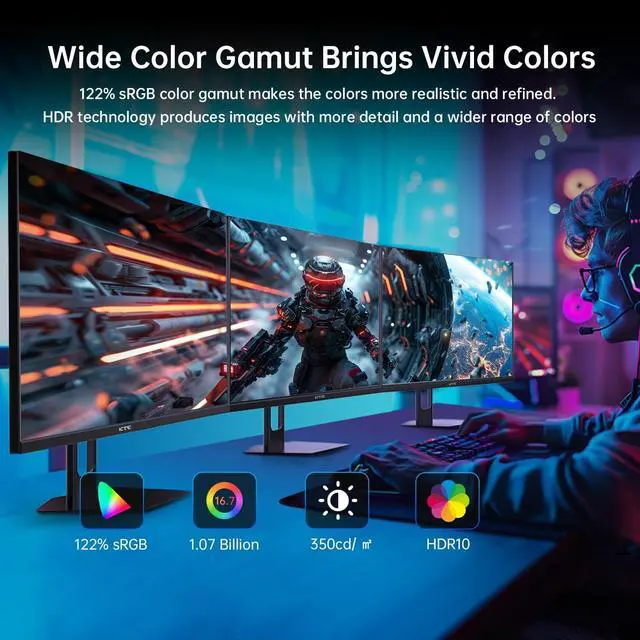 High Image QualityThe 27 2560 x 1440 gaming monitor features a Fast IPS panel with 2K QHD resolution for crisp visuals. Delivers clear images for gaming, video watching and working. Frameless on three sides, reducing frame interference and enjoying a high level of immersion. ^^ 180Hz Gaming MonitorUltra-fast 180Hz refresh rate and 1ms GTG response time allow you to accurately aim at moving opponents. Adaptive-sync to effectively prevent tearing, bringing the ultimate gaming experience. Prepare for game Black Myth Wukong. ^^ Stunning Colors120% sRGB wide color gamut, enjoy realistic images and vivid colors.