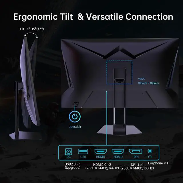 350cd/m brightness, 1000:1 contrast ratio, giving you an immersive experience. brings more details and nuance to your screen. ^^ Multiple InterfacesKTC gaming monitor uses DisplayPort 1.4 x1, HDMI 2.0 x2, and USB 2.0 x1 ports, supporting desktop computers, gaming notebooks or game consoles. Tilt adjustment -5 to 15, 100*100mm VESA mounting, which can effectively save more space. ^^ GamePlus & Eye CareEliminate FPS drops for immersive gaming with GamePlus. The 5-way OSD Joyskick can control navigation menus and adjust screen settings. Eye Care mode minimizes blue light to keep your eyes relaxed and comfortable during long gaming sessions on your computer monitor.
