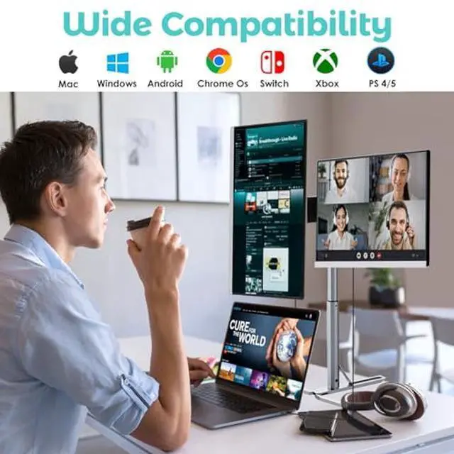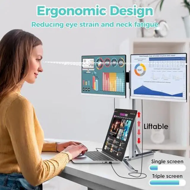 [(Detachable Design)] 15.6" triple portable monitor extender with 2 additional detachable screens, supports 360degrotation with the single stand. you can put it in the provided storage bag and take it wherever you want.Switch effortlessly between horizontal, vertical, and mirrored modes to suit your workflow. Switch effortlessly between horizontal, vertical, and mirrored modes to suit your workflow. Whether you're presenting, coding, or just browsing, the