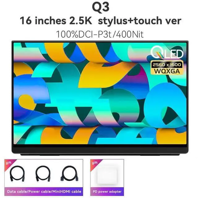 EHOMEWEI Q3 Touchscreen with Stylus, 16" 16:10, 2.5K IPS, 400 Nit Brightness, 2560x1600 Resolution Screen, Portable Monitor Display, for Gaming, Office, and Digital Art.