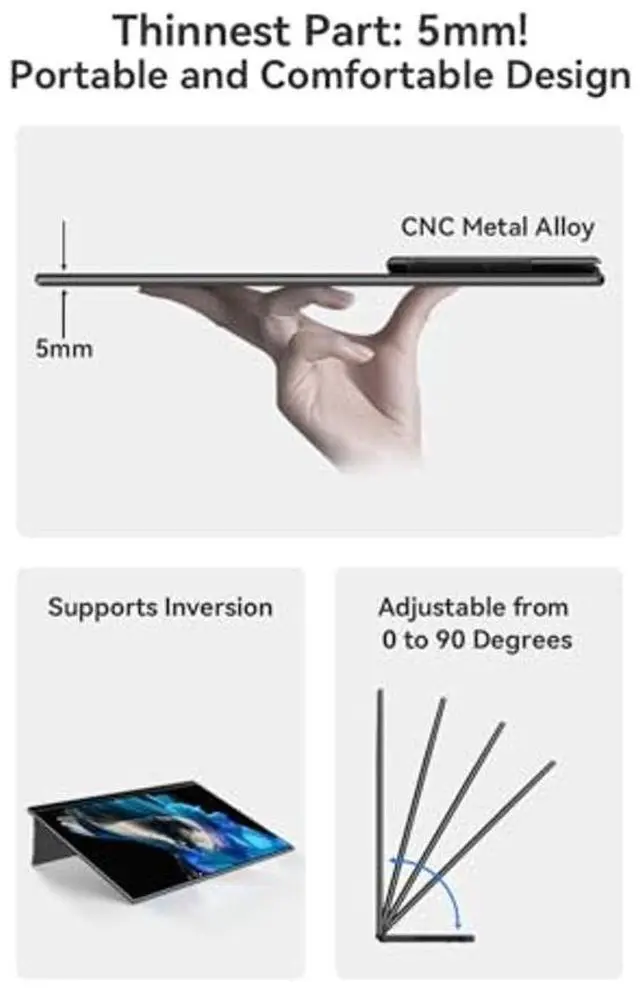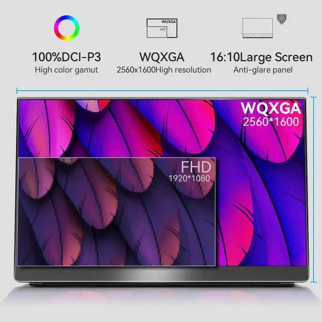 This 16-inch mobile display with a 16:10 aspect ratio and 2560 x 1600 resolution provides a high-quality, expansive viewing experience. The large screen area enhances productivity by allowing multiple windows or applications to be open simultaneously without scrolling, ideal for multitasking. The IPS panel ensures vivid, angle-stable images with a 178deg viewing range, and the 1ms response time delivers smooth visuals for gaming and media. Its portability and versatility make it suitable for remote work, gaming on PS4/Switch, watching movies, or streaming videos during breaks.