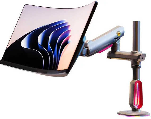 Adjustable - The gaming monitor arm support flexible adjustment of angles, upright 260 mm, rotation 360 degree, tilt angles -50 to +50 degree, swivel angles -90 to +90 degree, Max arm extension up to 25"(635)
