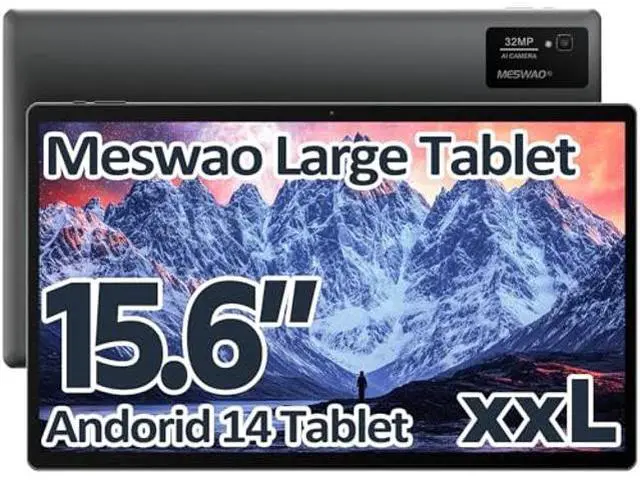 MESWAO Tablet 15.6 Inch Android 14 Tablet, Large Tablet with1080 IPS HD Display Big Screen, 8-Core, 6GB+128GB, Support 512G TF Card, 12000mAh Long Lasting Battery for Movie/Work-Space Gray