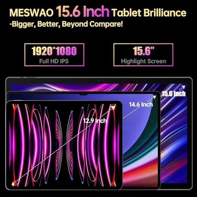 POWERFUL HELIO G99 PROCESSOR:Featuring an advanced MTK G99 core, MESWAO 15.6 Inch tablet guarantees seamless performance across web browsing, video streaming, and gaming.