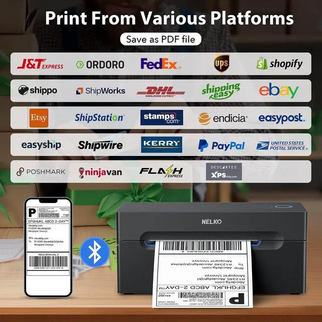 [(Go Wireless by Bluetooth)] Get the "Shipping Printer Pro" app from Google Play or Apple Store to print via Bluetooth on your NELKO Bluetooth thermal label printer for iOS and Android. Printing shipping labels has never been easier. Windows 7 or later computers can also print via Bluetooth. For Mac users with M1 or M2 CPUs, install the app from the App Store and connect to the printer via Bluetooth through the app. Don't connect directly via Bluetooth