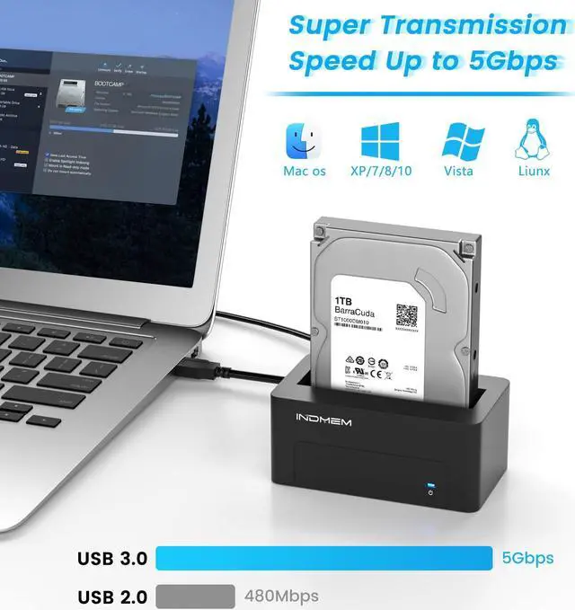 INDMEM SAS to USB 3.0 Docking Station for 2.5 / 3.5 inch Server HDD SSD with 12V/2A Power Adapter