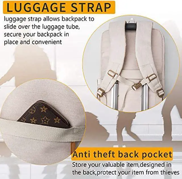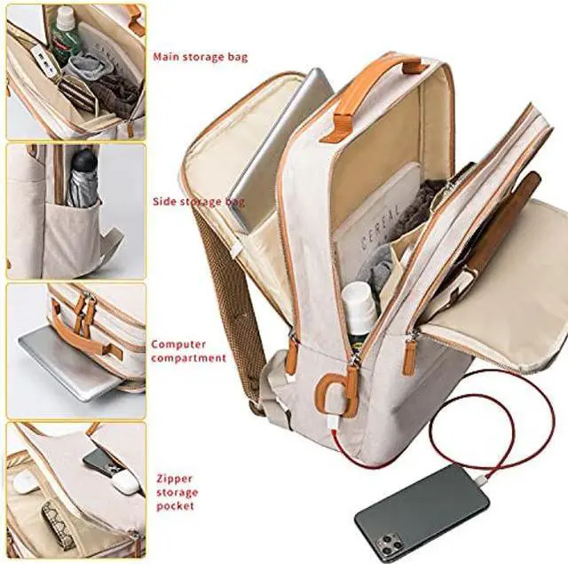 NOBLEMAN Best Laptop Backpack for Women, Professional Adult Office Commuter Womens Computer Backpack, Luxury Lightweight Carry on Travel Personal Item Bag For Airlines Fits 16 Laptop (Beige Plus)