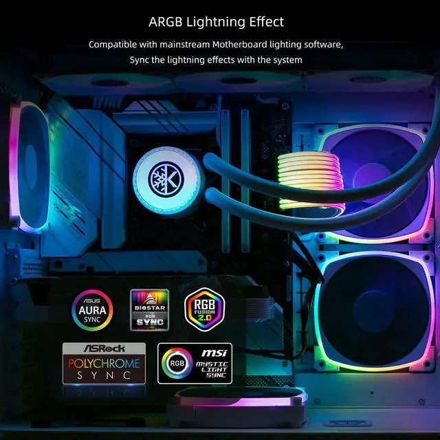 Efficient Thermal Management: Features a high-performance radiator and powerful pump to effectively dissipate heat, ensuring optimal CPU temperatures even during intensive tasks.