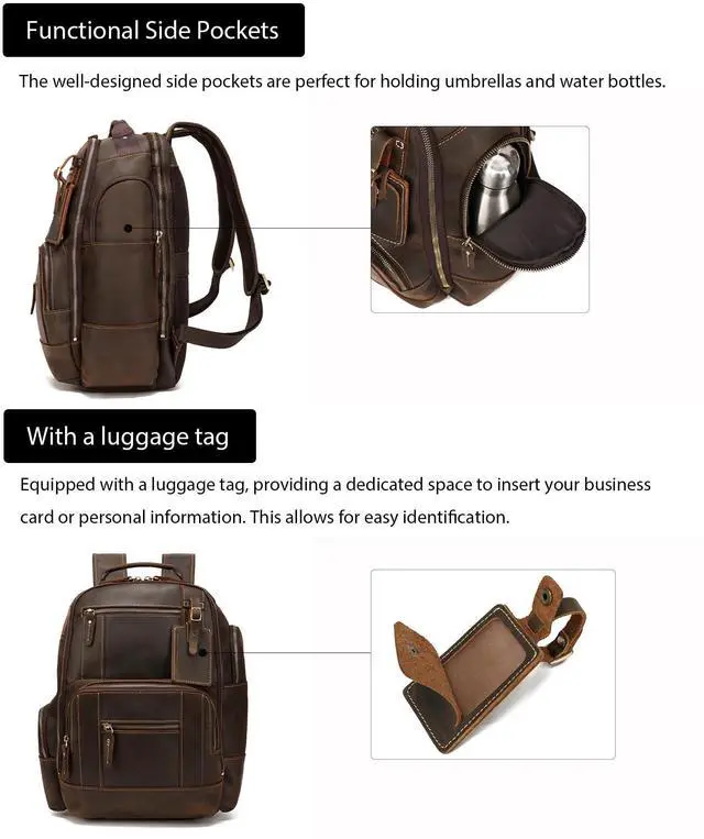 Zip side pocket at both sides for water bottle or umbrella. Features a back belt that slips over luggage handles. Stack this large capacity backpack on your wheeled luggage to free your shoulder or hands while carrying heavier stuff