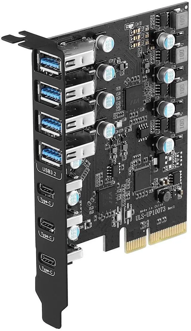 [(7-Ports Expansion card)] The PCI-E expansion card provides 7 extends 4 USB Type-A and 3 USB Type-C Ports from a PCIe 3.0 x1 slot, upward compatible with x4, x8 and x16 slot.More wired USB peripheral can be connected to the computer system. (Only supports the transmission of data signals, not video signals, Thunderbolt protocol, monitor.)