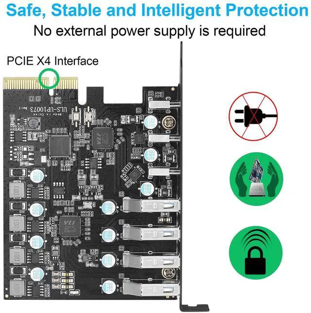 [(Fast Transmission Speed)] The PCIe USB 3.2 / 3.1 gen 2 Card is equipped with a bandwidth of 10Gbps that ensures fast data transfer. A must-have for external hard drives and ideal for file backup, video editing and data recovery. Note:The actual transmission speed is limited by the setting of the device connected.