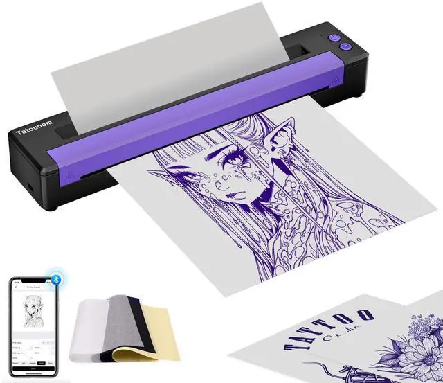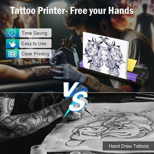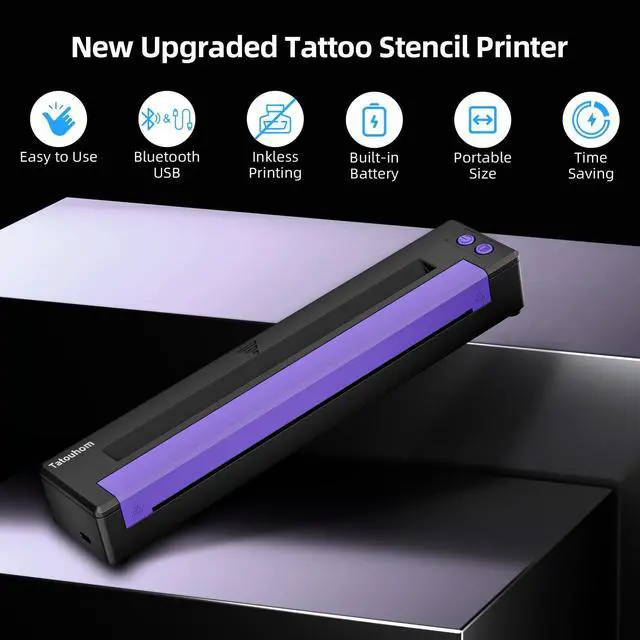Upgraded Tattoo Printer: Our professional tattoo stencil printer is designed with upgraded technology and appearance. The thermal tattoo printer weighs only 1.3 pounds (0.592 kilograms), which is only 40% of the weight of traditional tattoo machines, making it more compact in structure. The appearance adopts the new purple and black combination design, which is lightweight and beautiful.