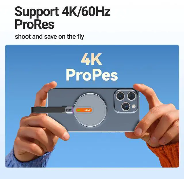 Record ProRes 4K Video Directly to External SSD: Compatible with iPhone 15 Pro/Pro Max and iPhone 16 Pro/Pro Max. Save your 4K ProRes videos directly to the external SSD, eliminating worries about your iPhone's internal storage limits.