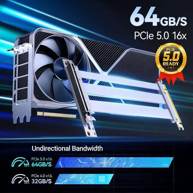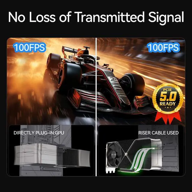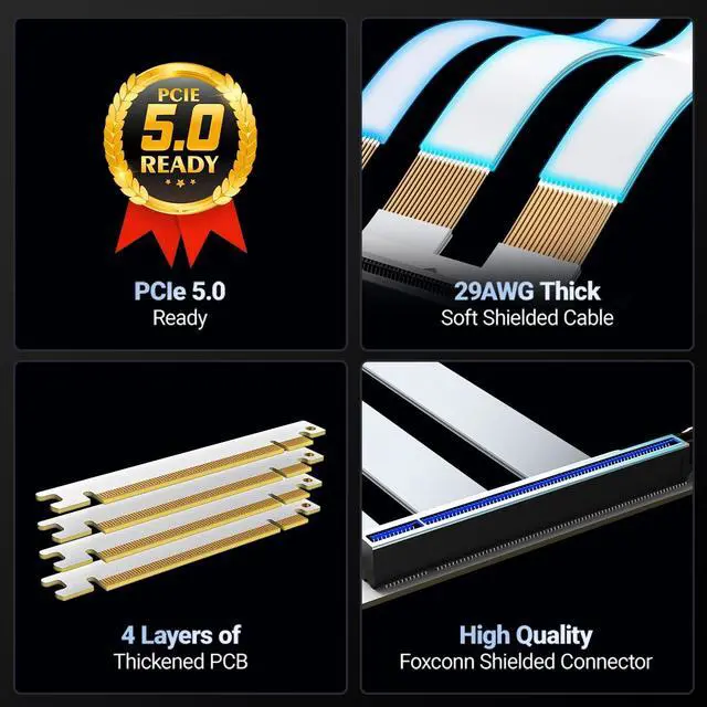 ^^ Premium Quality: Thickened 6-layer PCB ensures rigid bend-resistance & high-strength durability. High-quality connectors deliver stable signal transmission with zero performance loss. PCIe 5.0 gold finger density meets Intel PCIe 5.0 specs.