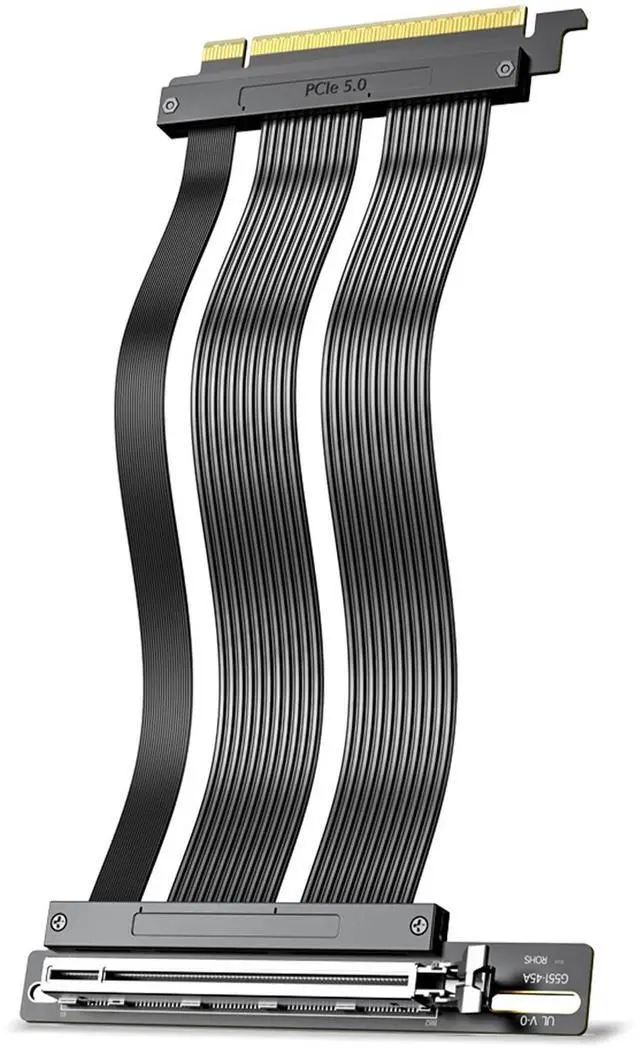 ^^ Highly Flexible Installation: The JEYI PCIe 5.0 X16 vertical riser cable supports 90/180 bending for easy vertical GPU installation. It also prevents motherboard flexing and fixes issues like bent slots or poor connections.