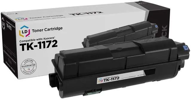 Product name: TK-1172 1T02S50US0 (black) toner cartridge pack compatible replacement for Kyocera TK-1172 1T02S50US0 toner cartridges for Kyocera TK1172 1T02S50US0 ^^ Professional compatible replacements manufactured by LD Products. Kyocera is a registered trademark of Kyocera and is not affiliated with and does not endorse LD Products.