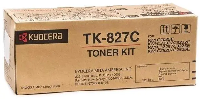 Kyocera 1T02FZCUS0 Model TK-827C Cyan Toner Cartridge with Waste Toner Bottle, for Use with KM-C2520, KM-C2525E, KM-C3225, KM-C3225E, KM-C3232, KM-C3232E and KM-C4035E Printers, Up to 7000 Pages YieldKey Features- For use with KM-C2520, KM-C2525E, KM-C3225, KM-C3225E, KM-C3232, KM-C3232E and KM-C4035E Printers- Genuine Kyocera- Up to 7, 000 Pages Yield at 5%