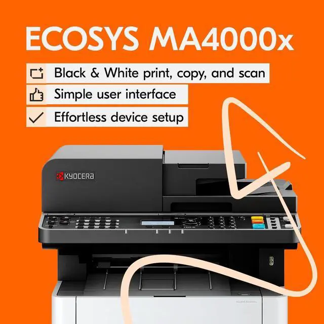 KYOCERA ECOSYS MA4000x Monochrome Multifunctional Laser Printer (Print/Copy/Scan), up to 42ppm, Dual Scan Document Processor and Free OCR, Cloud & Mobile Utilities