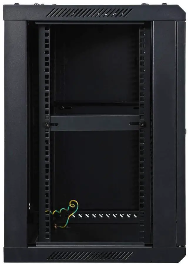 Load Capacity: 132 lbs. / Fits all standard 19" rack mount devices up to 16" mountable depth ^^ Sturdy and rugged frame construction with reinforced lockable door for increased security. ^^ Features adjustable depth equipment mounting rails and brackets. ^^ Removable and reversible door and side panel; removable cable pass-through on both of top cover and bottom pane. ^^ Ships flat pack; Easy assembly required, including screw package and keys