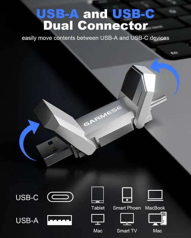 GARMESE 256GB USB C Flash Drive Up to 450MB/s USB 3.2 Solid State Thumb Drive Type-A + Type-C 2-in-1 Flash Drive Memory Stick Data Storage Compatible with Smartphone Tablet Computer Game Console