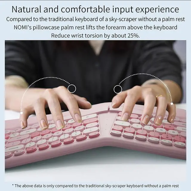 [(MEMBRANE ERGONOMIC KEYBOARD)] Split and sloping keyboard design matches your arms and hands. The low keys can be activated with a light press, reducing typing stress. The integrated wrist rest supports your wrist in a comfortable position. This carpal tunnel keyboard allows you to type in a more natural posture, reducing muscle strain in your wrists and forearms.