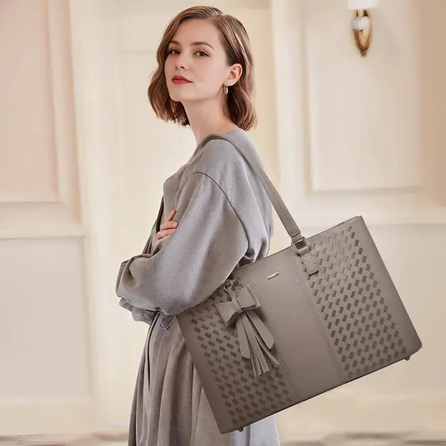Professional Womens Laptop Bag: The computer bag is made of durable, high-quality water-resistant and scratch-resistant PU leather. The metal feet base protects your laptop tote bag from damage, and the reinforced stitching at each stress point enhances the durability of this womens work bag.
