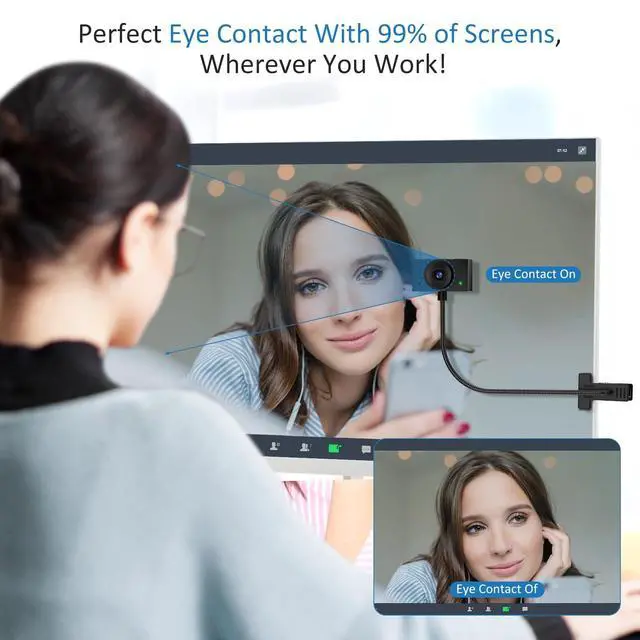 Eye Contact 1080P Webcam with Microphone & Stand for PC & Mac, Center Cam with 95deg FOV, USB Camera for Desktop & Laptop, Plug&Play, Compatible with macOS & Windows