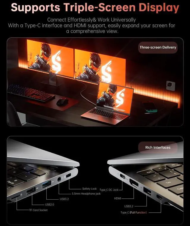 [(16" High-Definition IPS Screen)] With its wide color gamut and high refresh rate, this laptop delivers smoother visuals and sharper detail, offering a more vivid and accurate representation than standard displays. This enhanced clarity brings a stunning and immersive visual experience, making every scene more dynamic.