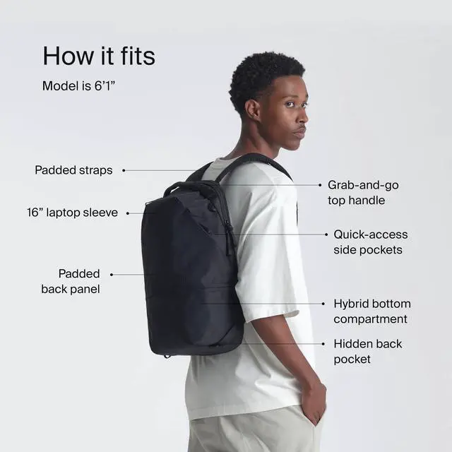 EVERYDAY BACKPACK ^^ The Arkose Backpack is a travel backpack with a padded laptop compartment, and 12 storage zones for a water bottle, portable charger, external hard drive, stylus pen and daily gear. ^^ 70% RECYCLED ^^ Made from durable weatherproof recycled nylon to keep your belongings safe. ^^ CAMERA INSERT BAG ^^ The lower compartment fits our Small Camera Insert which holds a DSLR camera and 1 camera lens, transforming your backpack into a camera backpack, complete with external tripod holder. ^^ PREMIUM HARDWARE ^^ This bag features the world's most trusted YKK zips and its backed for life.