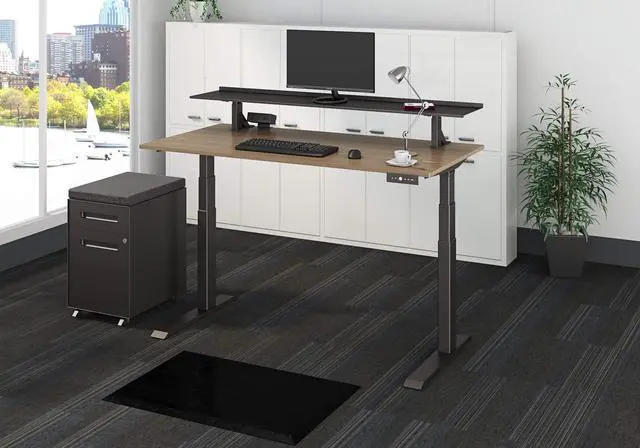 • Raises monitors to a more ergonomic and comfortable viewing height; adds usable storage space for books, supplies, and other desktop items