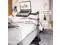 ELEGANCE IN DESIGN: The SMART V-SHAPED BASE discreetly hugs chair corners, seamlessly blending into your room without being obtrusive. Its smooth sliding capability effortlessly slips under beds, enabling work whether sitting or supine. Four casters ensure easy mobility, allowing you to roll it aside and back effortlessly, and all casters include foot-lever locks for stability. Moderately weighted, the base counterbalances the desktop, ensuring a stable and secure working platform.