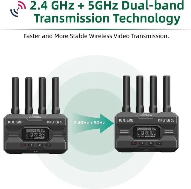 Unmatched Stability: The CineView SE SDI Video transmitter streams video via 2.4GH z and 5GHz Wi-Fi at the same time. The receiver identify interference and combine the two streams to form the complete video stream. It delivers seamless performance even in challenging environments with heavy interference, perfect for professional photographers and filmmakers ^^ Long-Range Wireless Transmission with