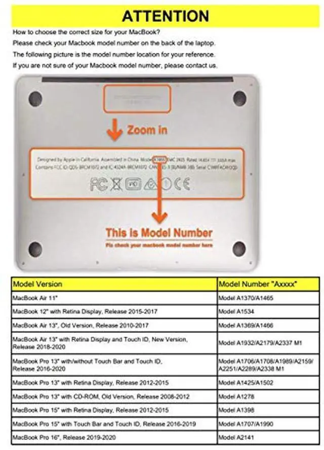 2)The model number is located on the bottom of your MacBook, in small prints which says "Model: AXXXX". "XXXX" are numerical numbers.