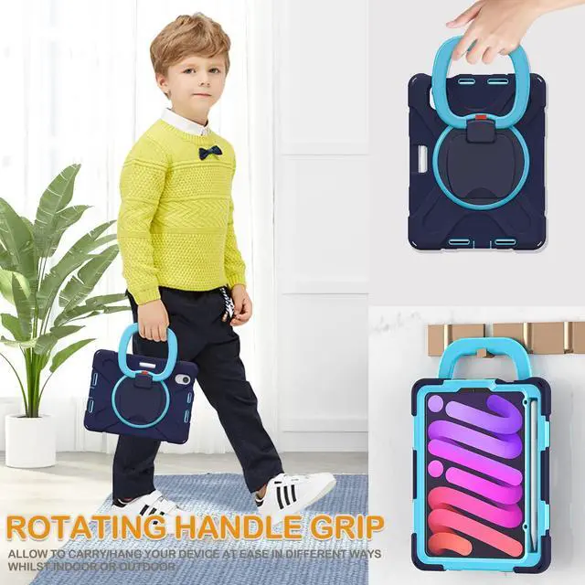 BRAECN for 8.3" iPad mini 7 (A17 Pro) 2024 / iPad mini 6 2021 Protective Case w/Screen Protector, Pencil Holder, Handle Grip, Shoulder Strap, Kickstand for iPad mini A17 Pro/ A2567/A2568/A2569, Navy