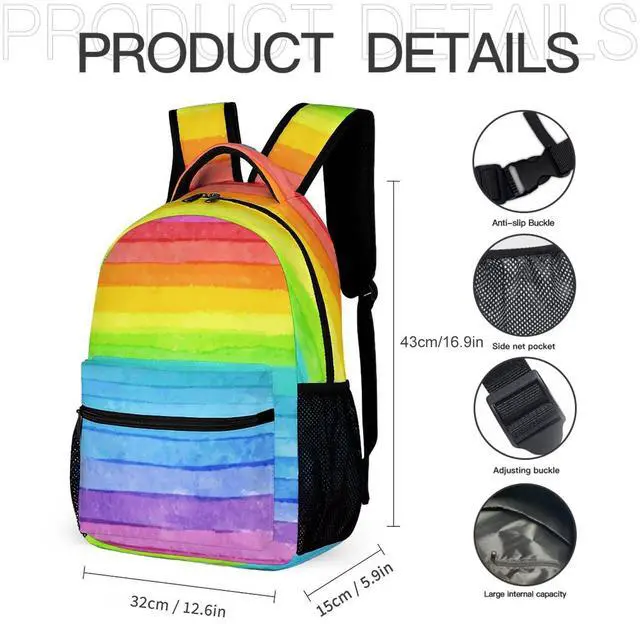 Fekroma Rainbow Backpack Set School Bookbag with Lunch Bag Lightweight Pencil Case Pouch Bag (Rainbow, One Size)