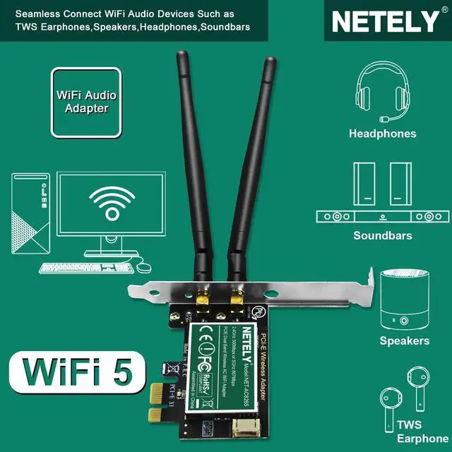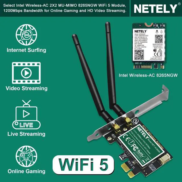 NETELY Dual Band Wireless-AC 1200Mbps PCIE WiFi Adapter with Bluetooth 4.2 for Windows 7, 8. x, 10, 11 64bit System Desktop PCs, 2.4GH z 300Mbps and 5GHz 867Mbps PCIE WiFi Card (NET-AC8265)