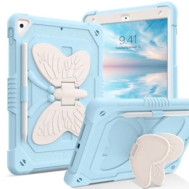 [(Butterfly Wings Kickstand)] Sturdy built-in butterfly kickstand,when you want to typing, gaming or watching video not have to hold the iPad at the same time
