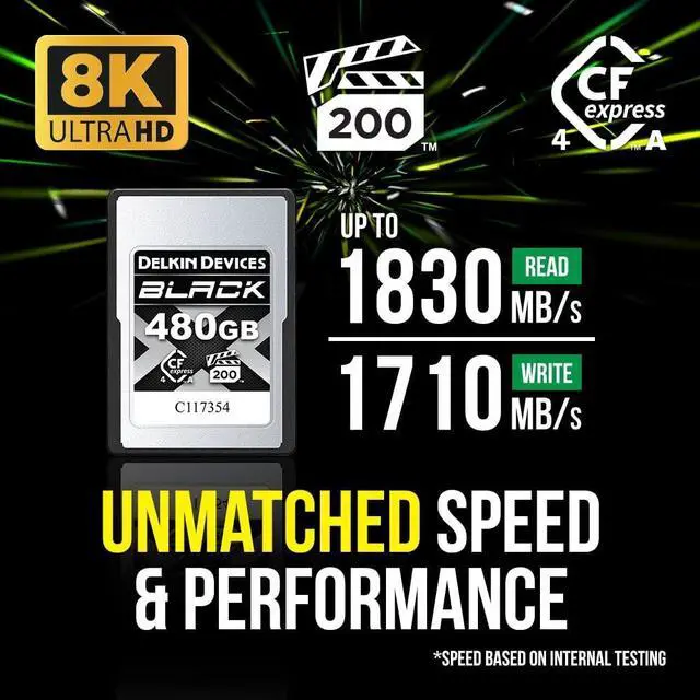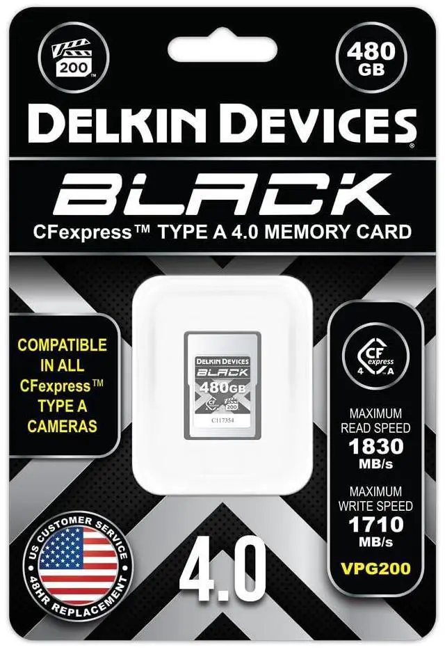 It is also backed by Delkin's 48-hour replacement warranty, making it a dependable choice for professional use. Whether you're shooting high-speed action, cinematic productions, or professional photoshoots, the Delkin Devices BLACK CFexpress Type A 480GB card is the ideal choice for top-tier performance and reliability.