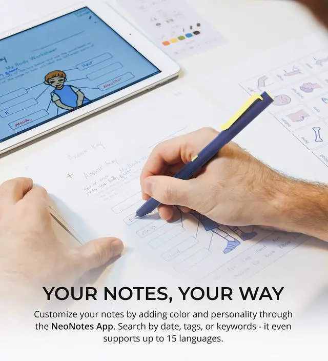 Digitize your Notes - The internal camera in Neo Smartpen captures your handwritting and converts them to digital documents when the pen syncs with Neo Studio app. ^^ Write and Sync The digital pen has 128MB of internal storage so you can transfer your handwriting data at a later time.