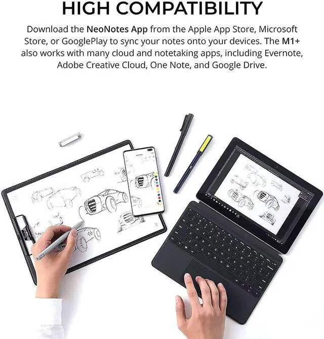 NeoLAB Neo Smartpen M1+ (Black). The Neo Smartpen M1+ features an optical sensor that captures your handwriting on an NCode paper and converts it to digital file with the use of the companion app. Download Neo Studio or PaperTube from App Store / Google Play and sync your M1 Plus. These apps allow you to transfer the pen data to your computer or tablet. The Neo Studio app allows you to convert analog writing into text. Download the additional languages to transcribe your handwriting into another language. M1 Plus offers 3 times the writing hours of the original M1.