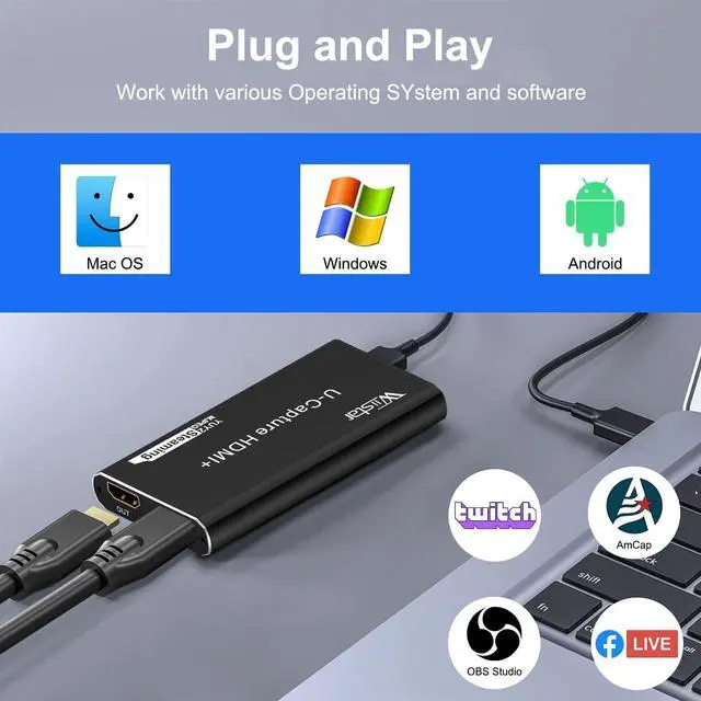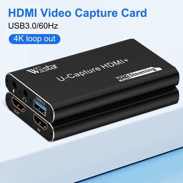 1080P60fps Video CaptureThis Wiistar HDMI video capture card connect to your HDMI source device and computer, and capture video via USB 3.0 port up to 1080P 60fps. The USB 3.0 capture card for streaming suitable for high definition acquisition, live broadcasts, video recording, Online Teaching, etc. ^^ Support Mic-in for CommentaryWiistar capture card has microphone input and you can use it to add external commentary when playing a game. so that you can stream your voice and record your voice by the ports easily. It also has a 3.5 mm audio output port.
