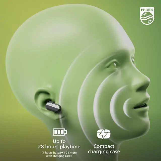 You can enjoy warm, detailed, natural sound, focus on work, or socialize freely with Philips T6908 True Wireless Headphones, which comes with state-of-the-art hybrid Active Noise Canceling (ANC) technology. AI microphones focus on the sound of your voice, allowing for crystal-clear calls even in bustling environments. Tailor your auditory experience with adjustable noise-canceling levels, conveniently managed through the Philips Headphones app. Need to chat face-to-face? Never miss a beat with the Conversation Hearing mode, which allows you to socialize without removing your earbuds. Beamforming microphones capture the voice in front of you while canceling out ambient noise, ensuring clear communication in any setting.
