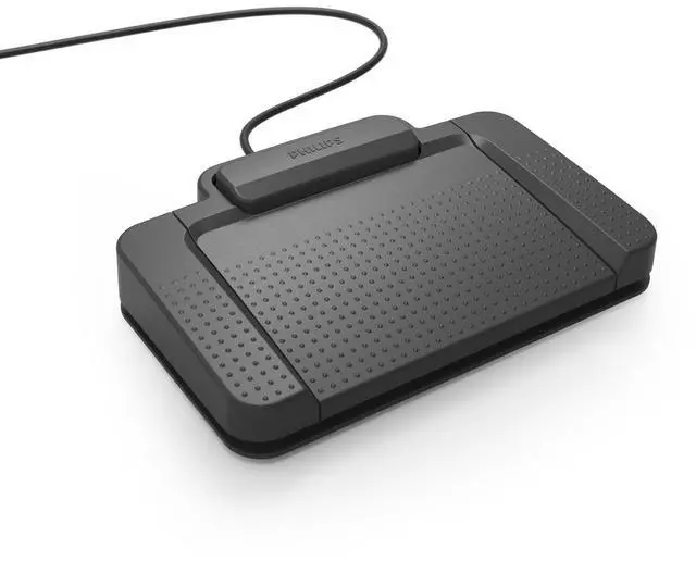 Transcription made easy keep your hands free for non-stop typing. Philips ACC2330 USB Foot Control for has been designed to allow you to work faster and more accurately by using your foot to start and pause the playback of audio files, making it perfect for professional dictation. The ergonomic design was developed by closely studying transcriptionists movements and the slim design allows for minimized physical strain due to less foot movement with the added option of fixing the middle pedal in place. The ergonomic design of the Philips Foot Control sets new standards in terms of usability in the professional dictation arena.